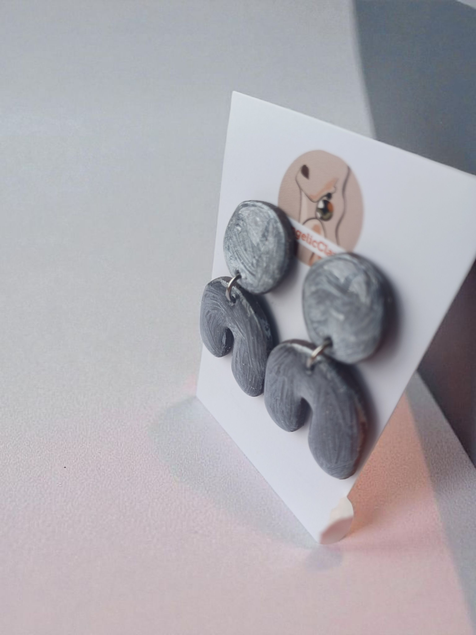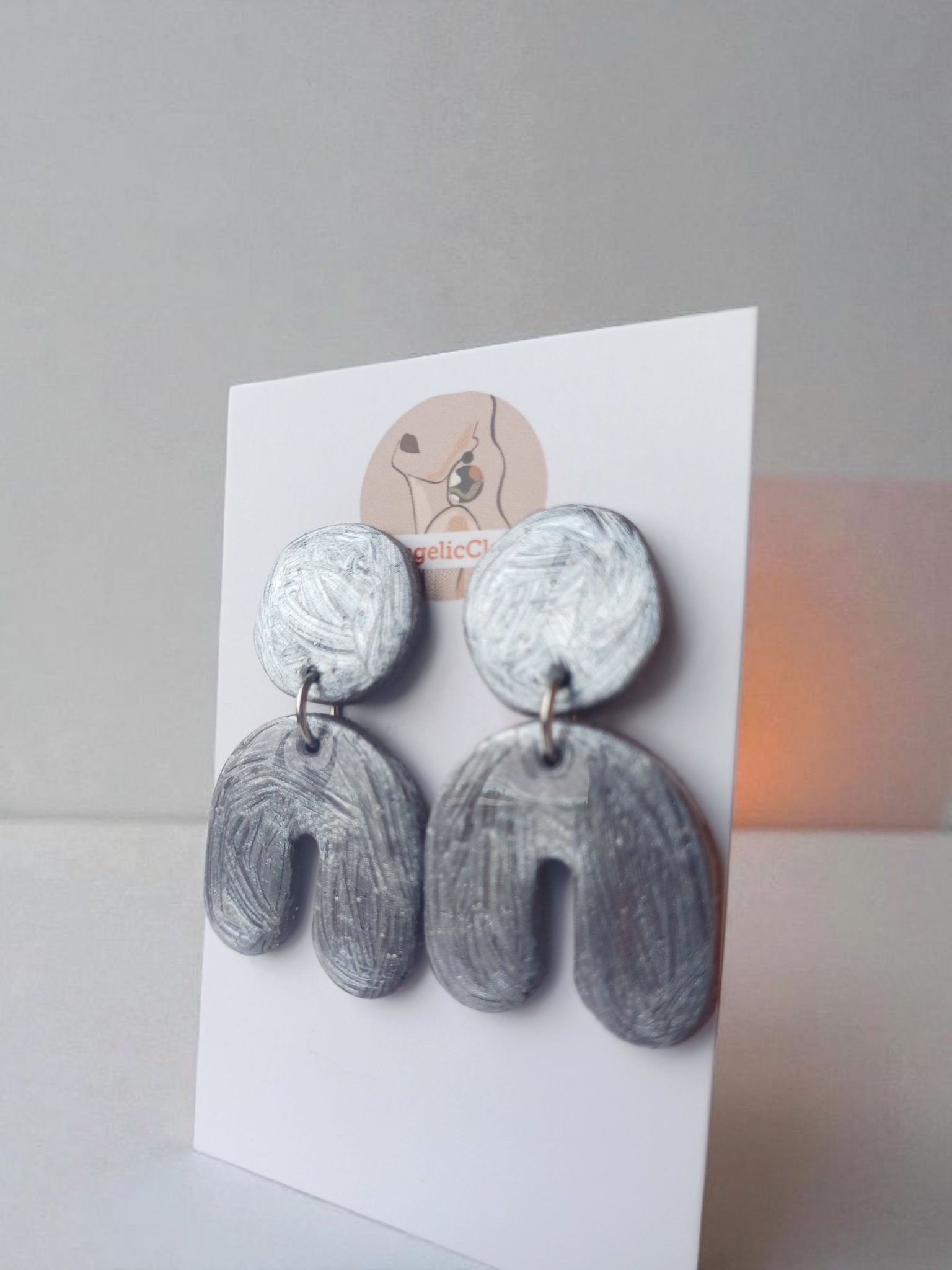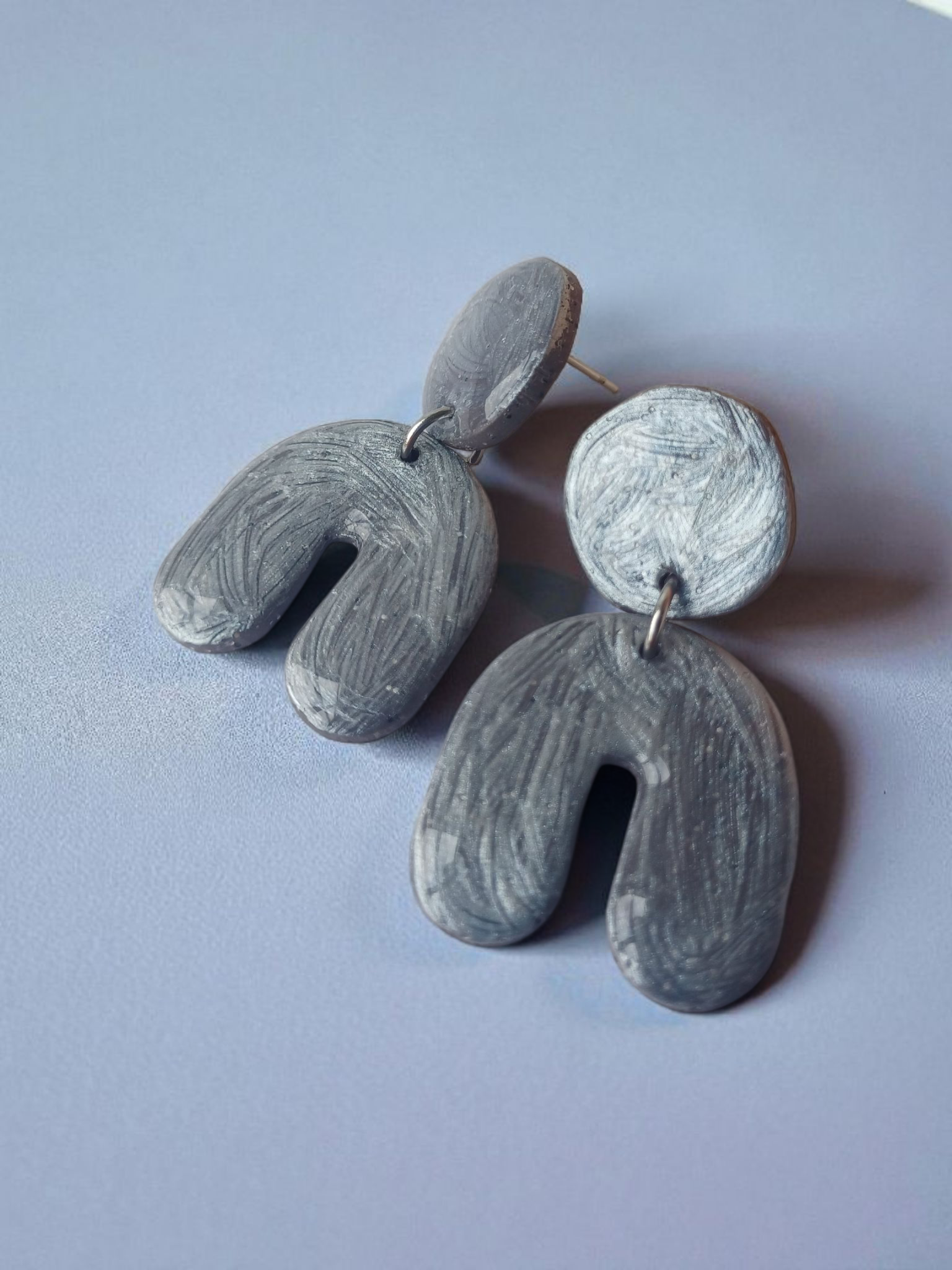 Modern Silver Arch Earrings • Handmade Polymer Clay Statement Dangles