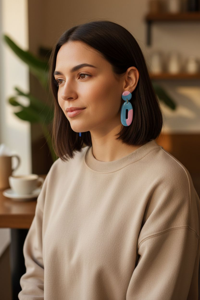 Style: Lightweight pastel statement earrings with a clean, minimalist vibe.