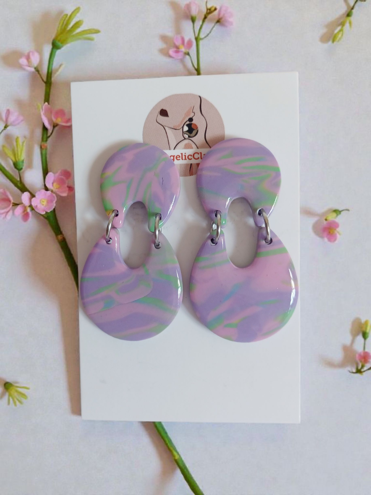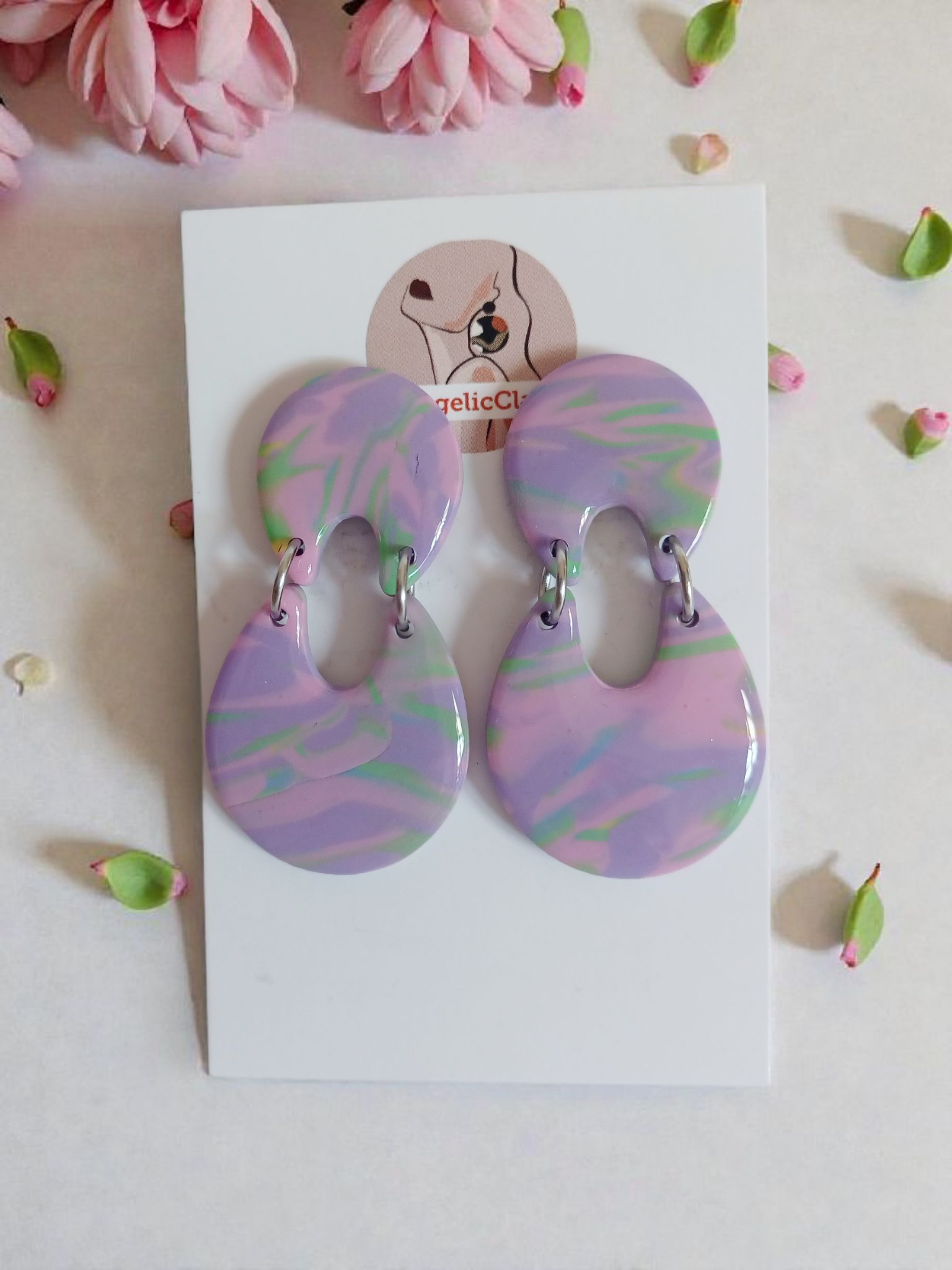 Lilac, Green & Pink Marbled Double-Drop Earrings