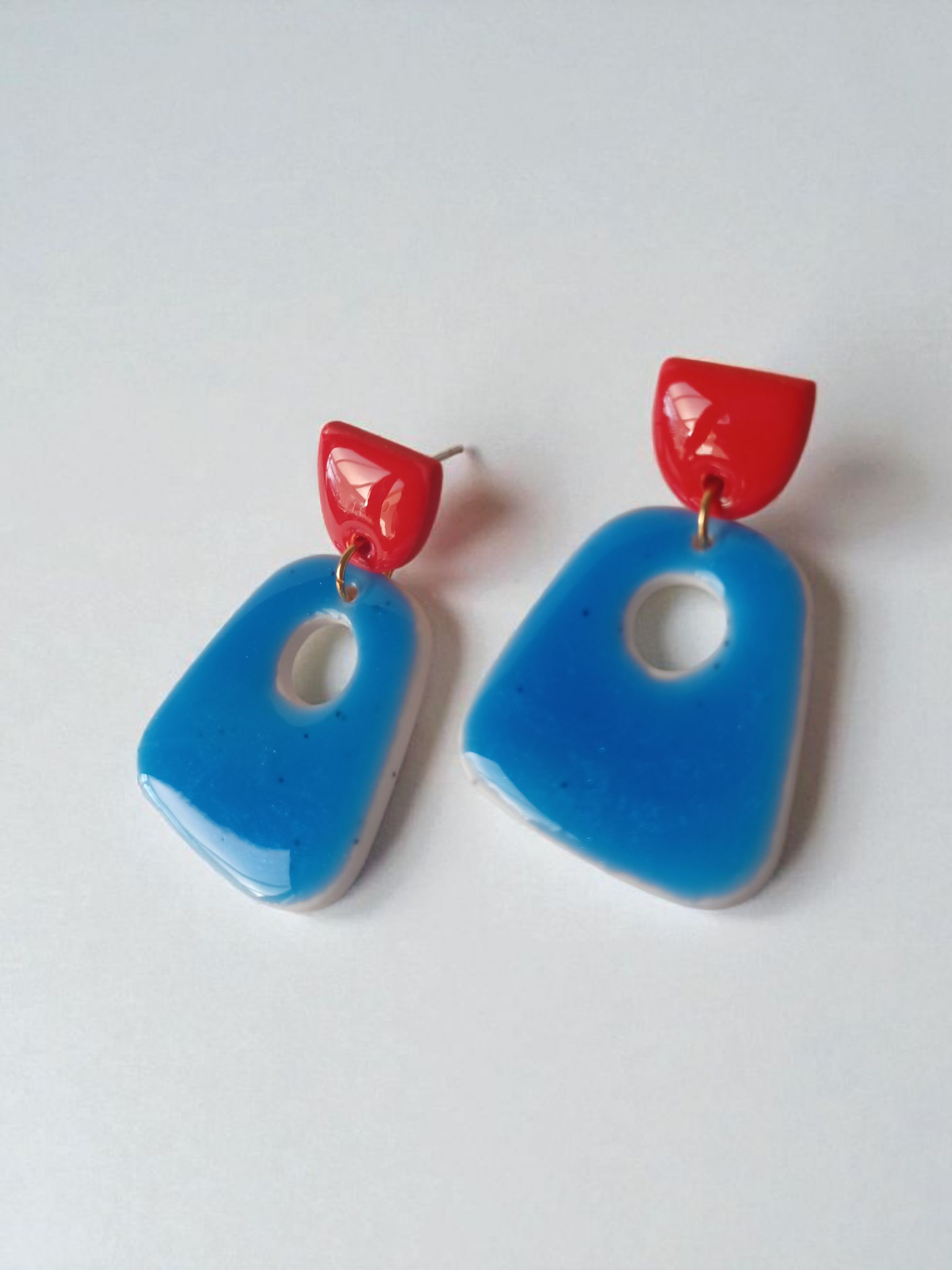 Handmade Polymer Clay Earrings Red & Blue | Resin Coated Statement Dangles | Irish Handmade Jewelry